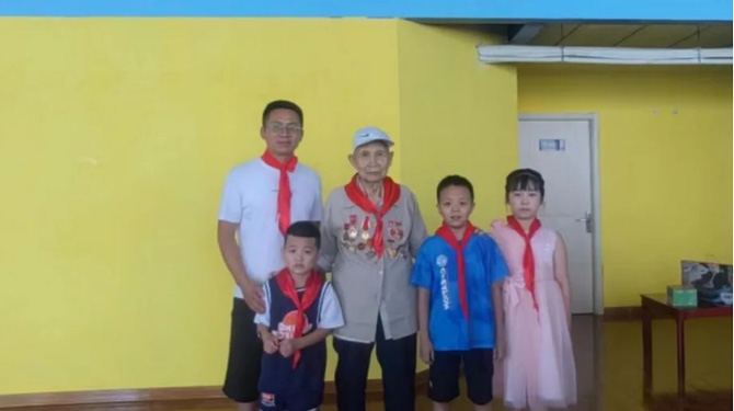8月2日,頤信養(yǎng)老黨支部成員來到團(tuán)結(jié)西路社區(qū),與退伍老兵們重溫軍人入伍誓詞,并帶領(lǐng)社區(qū)兒童聆聽他們的故事。退伍老兵馮博用最質(zhì)樸的語言分享了曾經(jīng)軍旅生涯難忘事跡,促使新一代社會主義接班人感受艱苦卓絕的革命歷程,深刻領(lǐng)悟軍人們不屈不撓、艱苦奮斗的革命精神和高尚情操,為兒童們樹立人生榜樣,培養(yǎng)遠(yuǎn)大理想和堅(jiān)定信念。最后,孩子們?yōu)橥宋槔媳灰凰蜕狭思t領(lǐng)巾與誠摯的祝福,爺爺們微顫卻標(biāo)準(zhǔn)的軍禮、溫暖而寬厚的笑容,令在的孩子們無不為之動容,這也是老一輩和新一代之間的精神傳承。