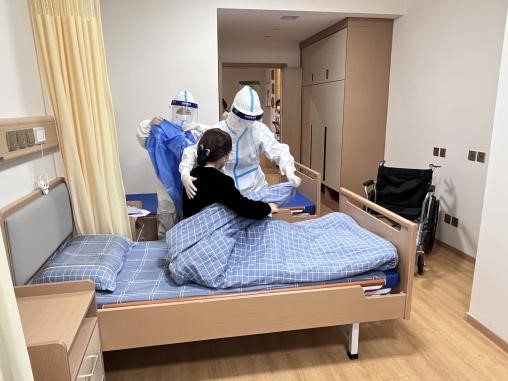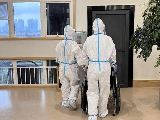 3、隨后,醫(yī)生安撫發(fā)熱長者,并退出長者居室,關(guān)閉入戶門并張貼“隔離區(qū)”標(biāo)識(shí),同時(shí)立刻匯報(bào)于院內(nèi)領(lǐng)導(dǎo);