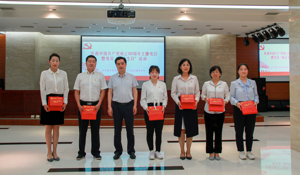 為慶祝建黨101周年,喜迎即將召開的黨的二十大,7月1日,西安投資控股有限公司黨總支舉辦慶祝建黨101周年主題黨日活動,集中為7月份前后入黨的黨員過“政治生日”。公司黨總支委員、黨員高管、各支部書記和黨員代表參加活動,黨總支書記杜巖岫參加并主持活動。